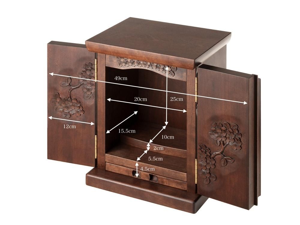 ※1点ずつ、職人が手作りでお仏壇を製作し、無垢の材料を使用する為、木目は写真とは異なる場合がございます。彫刻のデザインは商品写真と同じデザインですが一点一点手作業で彫刻いたしております。