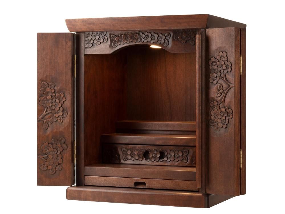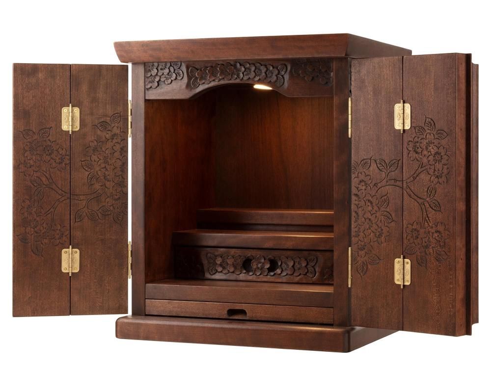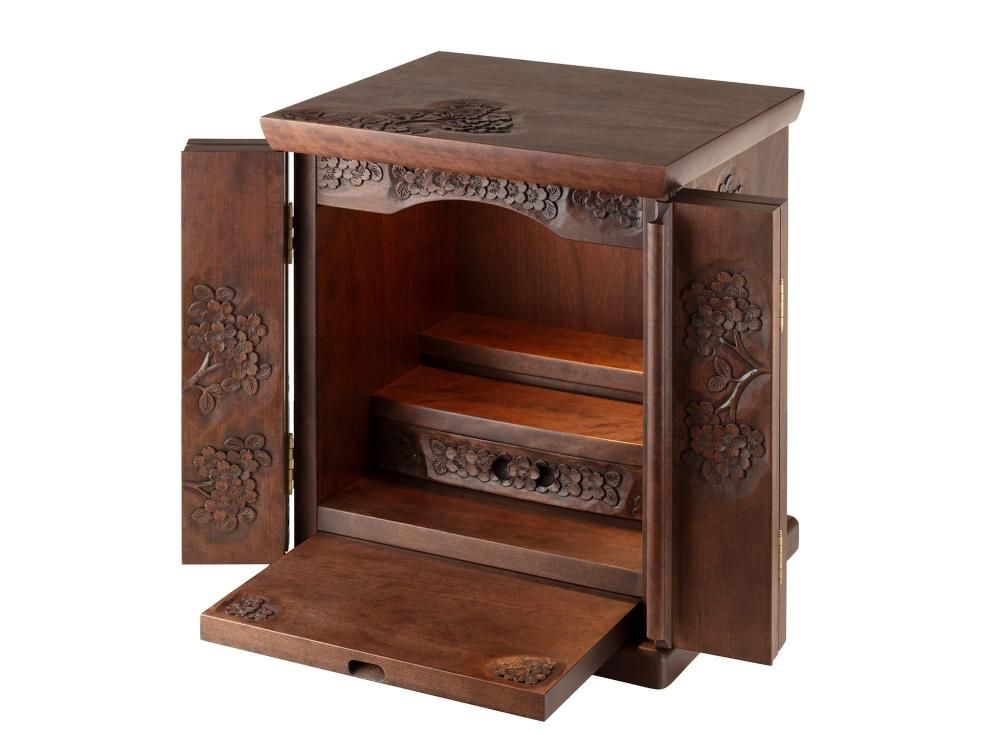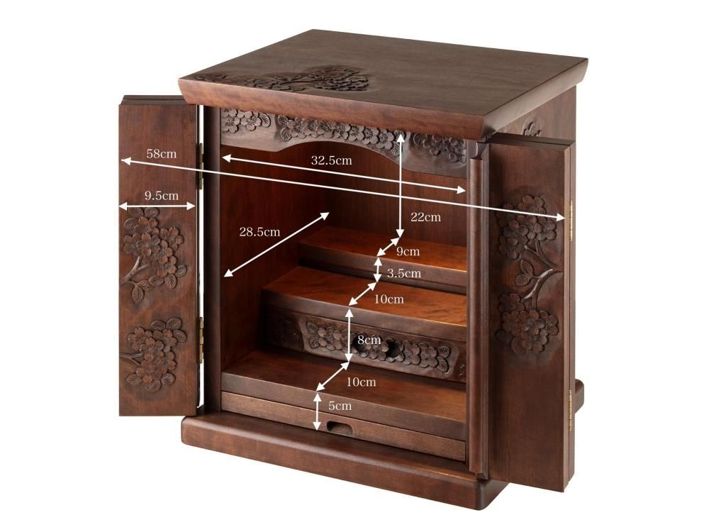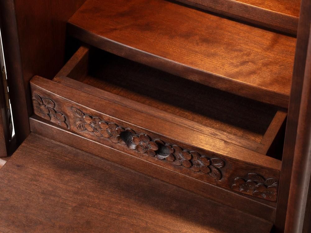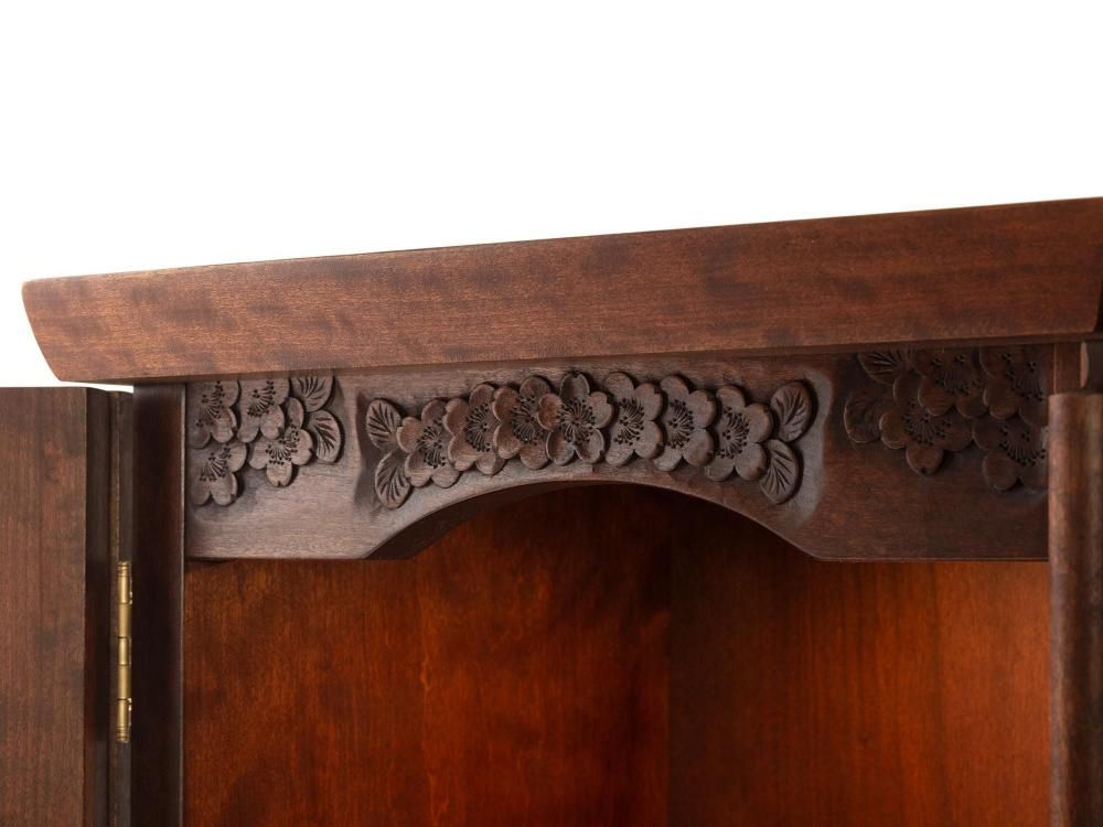 ※1点ずつ、職人が手作りでお仏壇を製作し、無垢の材料を使用する為、木目は写真とは異なる場合がございます。彫刻のデザインは商品写真と同じデザインですが一点一点手作業で彫刻いたしております。