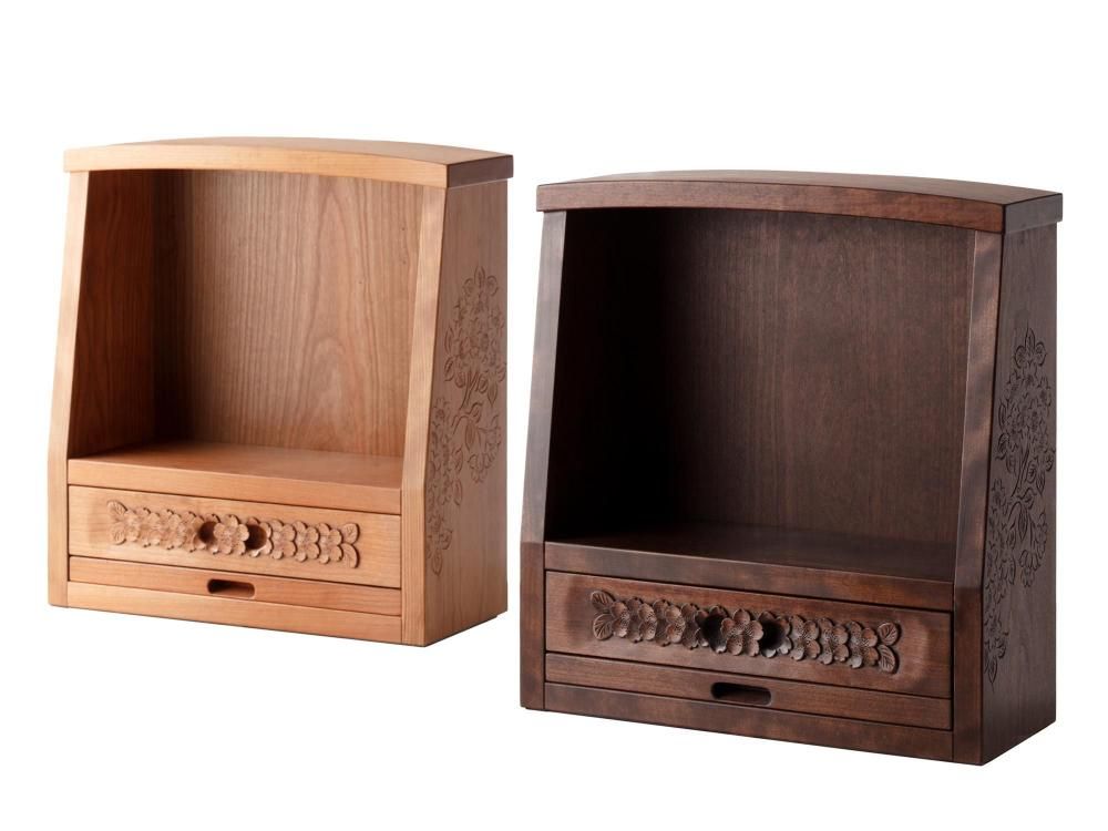 ※1点ずつ、職人が手作りでお仏壇を製作し、無垢の材料を使用する為、木目は写真とは異なる場合がございます。彫刻のデザインは商品写真と同じデザインですが一点一点手作業で彫刻いたしております。