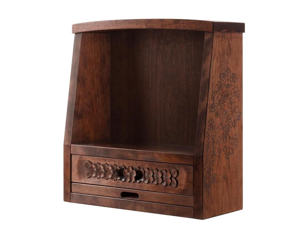 天板を丸く削り、優しい印象を与えています。和室やリビングに調和するデザインになっており、木の温もりを感じながらお部屋の空間を演出できます。